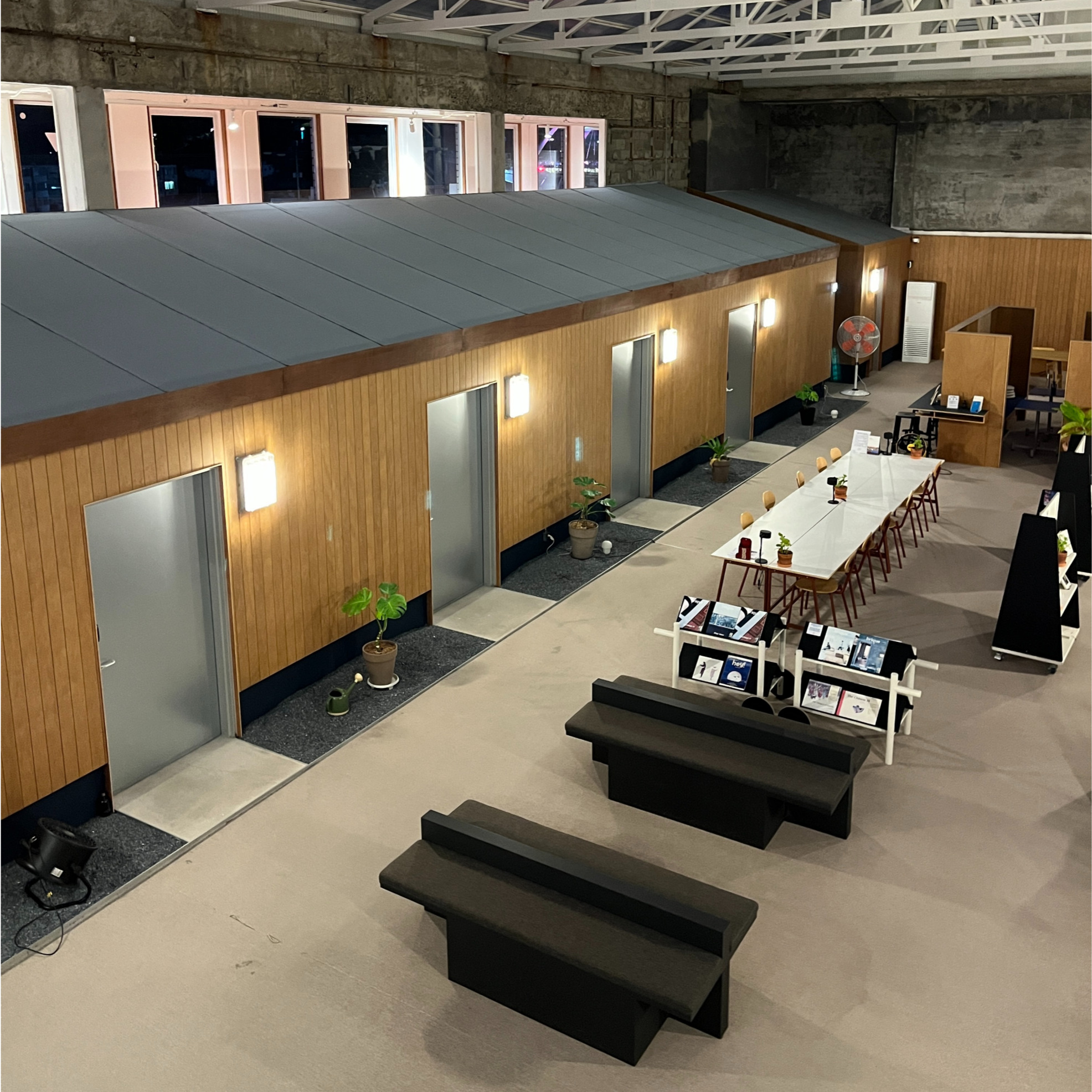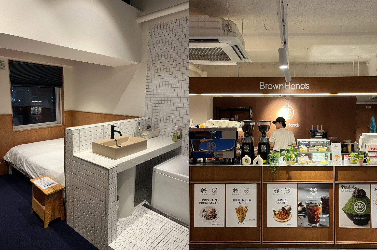로컬스티치 통영은 총 4층인데요. 1층은 카페로 운영돼요. 웰컴드링크로 아메리카노 또는 맥주 1+1을 제공해주고요. 2층은 세미나룸과 업무를 볼 수 있는 공간이에요. 3층이 객실인데요. 3층에는 공용 부엌과 편히 쉴 수 있는 커다란 로비가 마련되어 있어요.