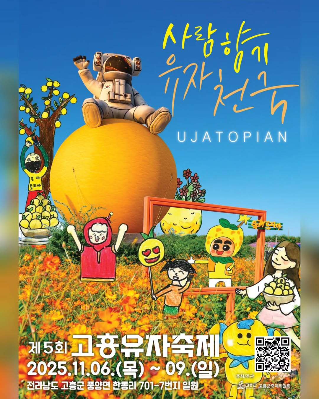 11월 6일부터 9일까지 제5회 고흥유자축제가 열려요! 낮에는 끝없이 펼쳐진 유자밭을 배경으로 유자청 담그기, 유자 천연비누, 유자 피자 만들기 등의 체험거리를 즐길 수 있고요. 밤에는 루미너리, 드론쇼 등도 펼쳐질 예정이라고. 게다가 뮤직컬, 공연 등의 다양한 문화 프로그램도 준비되어 있어요.