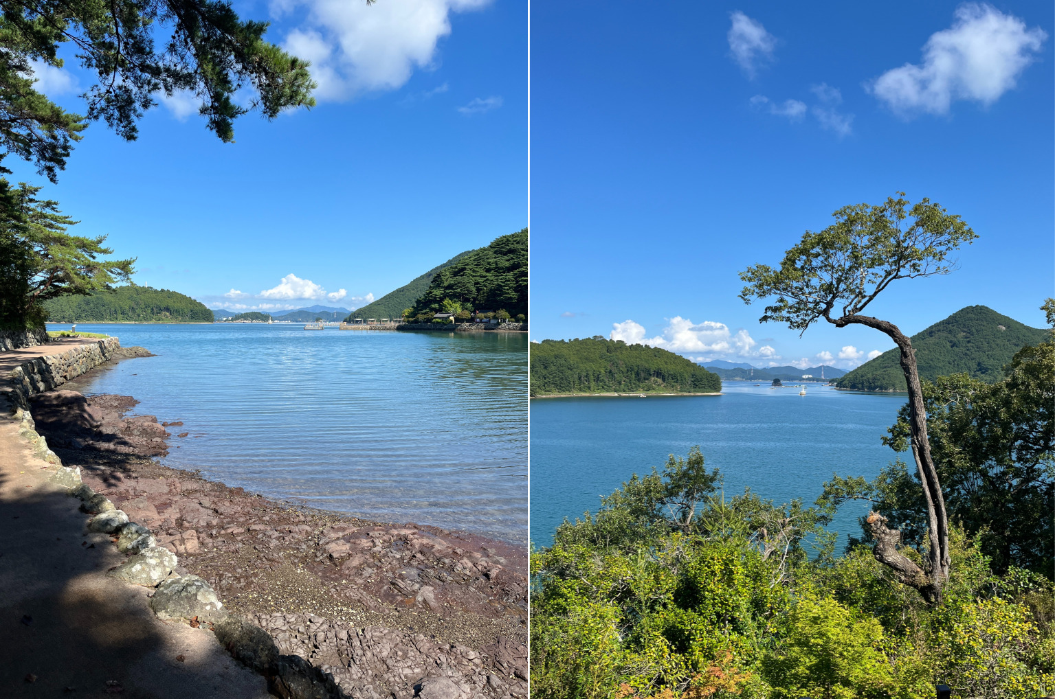 통영에서 배 타고 30분.🚢 이순신 장군이 학익진으로 대승을 거둔 한산도에 도착했어요. 한산도는 뱃길로만 갈 수 있는데요. 인적이 드물어서 그런지 맑고 깨끗한 바다와 잎이 푸르게 우거진 숲이 정말 아름다웠어요.